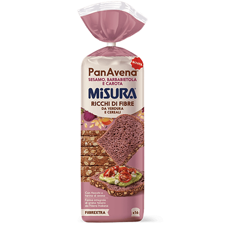 Lista ingredienti: farina integrale di grano tenero 57% – acqua – avena 4,5% (fibra, fiocchi 1%, farina 0,5%) – olio di semi di girasole – semi di sesamo 3% (bianco, nero) – lievito di birra – glutine di frumento (grano) – succo concentrato di barbabietola rossa 0,8% – zucchero – sale – farina di frumento (grano) maltato – concentrato di: carota 0,3%, mirtillo.